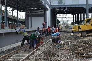 迎えた25日、筆者は再びバトゥチェペル駅に向かった。すると、KAI所有の幹部用巡視車が構内に停車していていたが、空港線ホームではショベルカーがせわしなく動いており、どう考えてもここを電車が通過するという雰囲気ではない。しかし、関係者の話によると、これから巡視車で駅部の入線確認を取り、予定通り空港特急車両は空港まで試運転を実施するとのことだった。