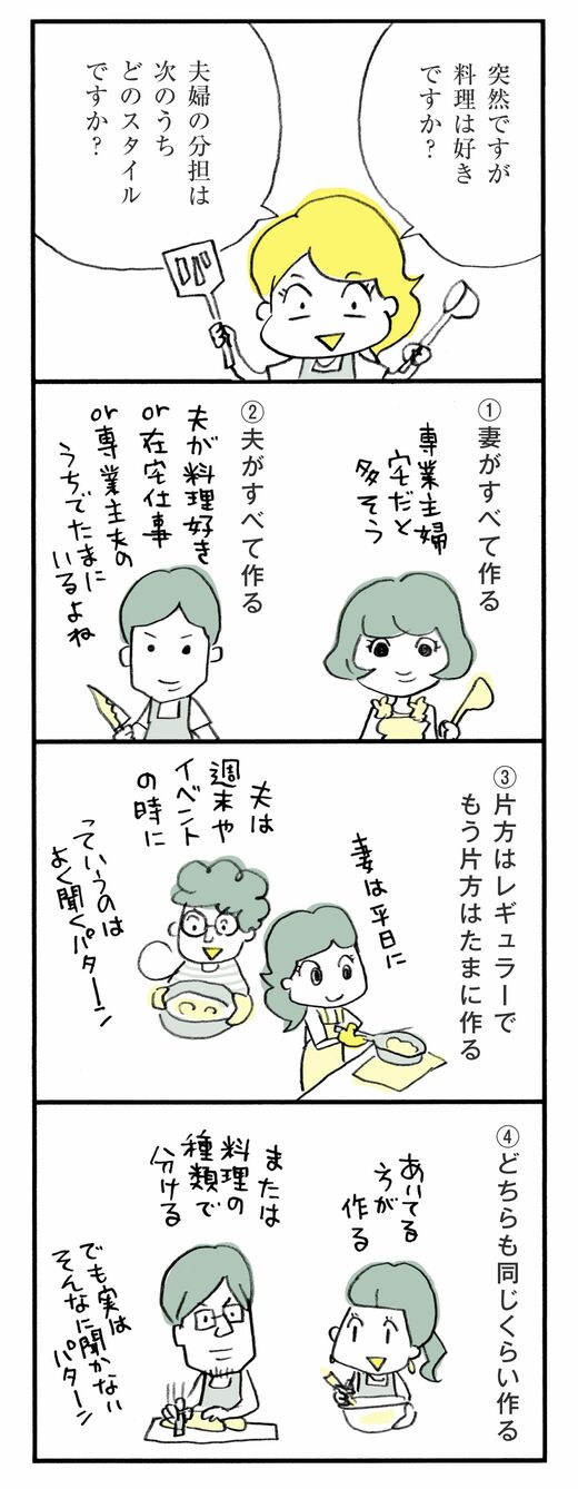 そんなふうに「つかれる家族」と「つかれない家族」を考察するこの連載。今回のテーマは「料理」の分担についてです。