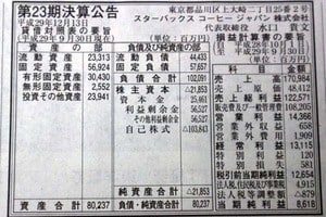 同社は昨年と同じ12月13日、日本経済新聞朝刊に決算公告を掲載した。2016年10月~2017年9月期決算は、売上高1709億円(前期比6.4%増)と増収ながら、営業利益143億円(同4.2%減)で減益の着地だった。純利益については法人税の負担が減ったことで、86億円(前期比11.9%増)と過去最高を更新した。