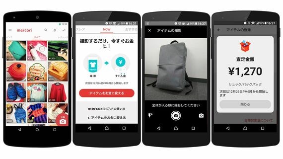もう1社、この新しいニーズに即応したのがフリマアプリを運営するメルカリだ。11月末、「メルカリ」のアプリ内に即時買い取りの新機能「メルカリNOW(ナウ)」を新設。フリマ自体も不要品を簡単に売り買いできるサービスとして成長してきたが、「もっと手軽にモノをおカネに換えたい」という需要も取り込むべく、新たなサービスを追加した。