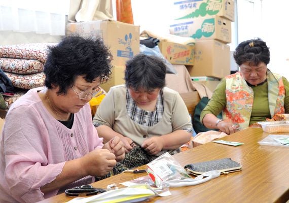 このイベントには、東日本大震災・原発事故の影響から全村避難という過酷な状況にある、福島県飯舘村の人たちが招待されている。仮設住宅に住む一部の女性たちが作った手作り商品製作グループだ。