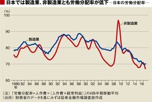 鶴光太郎・慶応義塾大学教授は労働分配率低下の経済的要因についてスーパースター企業の影響のほかに、3つの例をまとめている。第1の要因は情報通信技術(ICT)関係の機器の急速な価格低下を背景にした資本コストの相対的低下にあるという。資本が労働を代替する程度が大きければ、労働分配率が低下することになる。第2の要因は貿易やアウトソーシングの影響だという。輸入の増大の影響を強く受けた業種ほど労働分配率が低下する傾向があるようだ。第3の要因としては労働組合の組織率や最低賃金の実質的水準の低下など、社会規範や労働市場制度が指摘できるという。