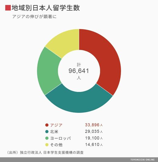 一方、JASSOは『協定等に基づく日本人学生留学状況調査結果』の中で、対象を「短期の交換留学等も含む」としています。実は、冒頭のグラフ(留学生数の推移)をみると一目瞭然なのですが、留学生数の62.2%(9万6641人のうち6万0145人)は1カ月未満の短期留学に参加しているのです。