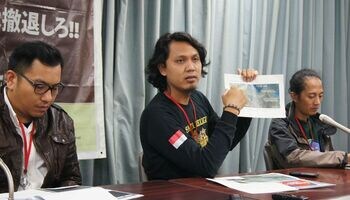 「インドラマユでの反対運動には激しい弾圧が加えられている」と支援者の1人で国際環境NGOのFoEJapanに所属する波多江秀江氏は指摘する。2017年12月17日の深夜1時ごろ、インドネシア国旗を上下逆さに掲げたことが「国旗侮辱罪」に相当するなどとして、反対派の農民3人が地元の警察に逮捕された(当日23時に保釈)。