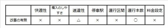 ダイヤ改正でどの程度改善されるのか、前ページで指摘した項目の状況を表にまとめてみた。