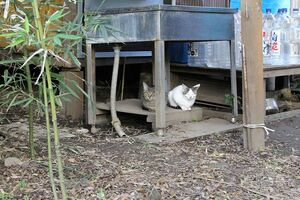 まれにヒモでつないで飼っている人もいるが、多くは半野良状態で飼っている。昼間は適当にそこいらを歩き回り、エサの時と寝る時だけ帰ってくる。そういう野良猫のために河川敷に小屋を建てている人もいる。しっかりとした作りで、もちろん雨風もしのげるし、定期的にエサも置いてあげている。