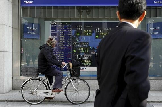 1月25日、東京株式市場で日経平均は大幅に続落した。ムニューシン米財務長官がドル安を歓迎する姿勢を示したことに伴うドル安/円高の進行を受け、主力株は総じて軟調な滑り出しとなった。写真は都内で2016年2月撮影(2018年 ロイター/Yuya Shino)