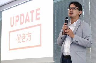 川邊健太郎氏は新本社のオフィス設計にかかわるなど、働き方改革にも熱心だ(写真は2016年10月の新本社内覧会にて、撮影:尾形文繁)