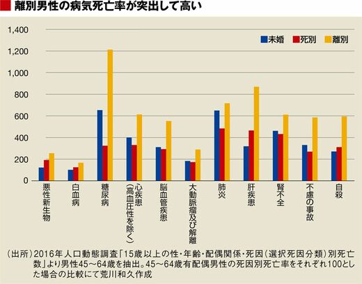 【離別男性の糖尿病死亡率は、有配偶男性の12倍】
