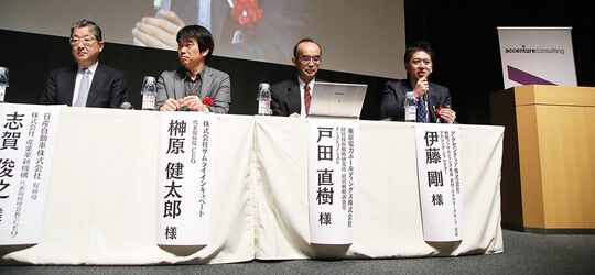 志賀氏は、IT企業が提供する車による移動サービスに危機感を示し「オープンイノベーションで新産業を起こす野心を」と訴えた。