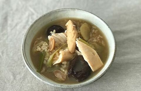 「材料を炊飯器に入れるだけで出来上がり。そもそもやわらかいサラダチキンが、スープを含んでさらにふんわり。食べるときもほぐしやすいですよ。また、プルーンとピーナッツからいいだしが出るので、それが鶏がらスープとなじんで滋味あふれる味に。クコの実などを使ってもいいですが、もっと身近で手に入れやすいプルーンだったら気軽に作れますよね」