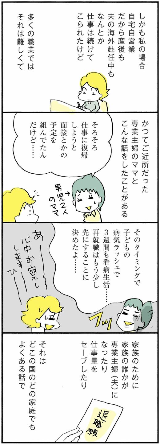 ライフ #ほしいのは「つかれない家族」 前の記事 次の記事 専業主婦は「家政婦」なのかという根本的疑問 稼ぐ、稼がない、それ以前の問題として… 3分で読める 公開日時:2018/02/09 11:00 ハラユキ イラストレーター、コミックエッセイスト フォロー 1/9 PAGES 2/9 PAGES 3/9 PAGES 4/9 PAGES 5/9 PAGES 6/9 PAGES 7/9 PAGES どこの国のどの家庭でも… 次ページが続きます:【収入のあるほうが決定権を持つのが普通?】 8/9 PAGES 9/9 PAGES