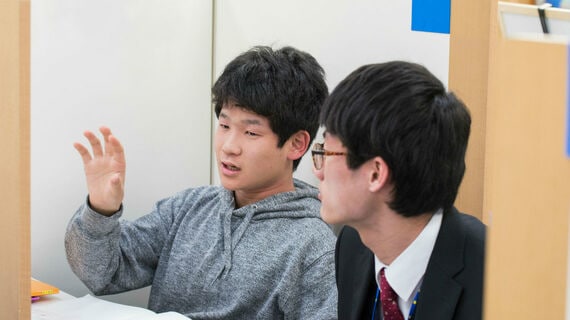 個別ブースに分かれた教室内では、生徒が問題を解く様子を講師が見守っている。生徒が行き詰まった様子で考え込むと、「この前勉強した○○○の時はどうだった?」と、講師はちょっとしたヒントを出す。すると生徒は「あ、分かった!」と、再び鉛筆を動かし始める。