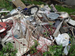 「落ちてるのは工事現場から盗んできた電線リールだな。銅は高いからね。1キロ800円くらいいくから。1キロ100円くらいのアルミよりずっと高い。あとは給湯器とクーラー、クーラーの室外機もあるな。あれは金属の塊だからね。金属屋に高く売れる。だから廃屋なんかから狙って盗まれやすい。車がないと運べないから、ホームレスが犯人じゃない場合が多いけど。でもどちらにせよ困ったもんだね」
