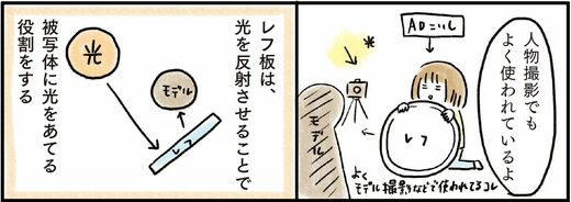 レフ板は光を反射させて、被写体に光をあてる役割をします。特に逆光での撮影だと影になりやすいのですが、影になってしまい暗くなっている箇所にも、レフ板で光をあててあげることで、影を薄くし、商品を明るく写すことができます。