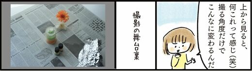 そこで意識したいのが「背景選び」です。用意するのは少し大きめの白い紙。商品を紙の上にのせて、真上から撮れば、余計なものが入るのを防ぐことができます。背景が白色になるので、商品の概要も伝えやすくなります。