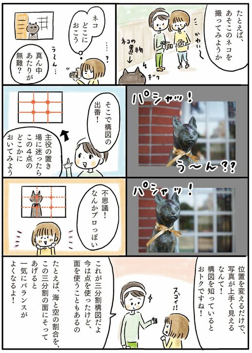 商品撮影以外にも、プロがやっているテクニックは簡単に取り入れることができます。たとえば日常の中でも撮影するときに、被写体をどのように配置しようか迷うことはありませんか? そんなときは「構図」を知っていると便利です。
