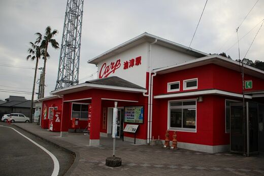 今年2月、広島カープの一軍キャンプの最寄り駅、宮崎県日南市のJR油津(あぶらつ)駅を訪れた客は度肝を抜かれたに違いない。駅舎が丸ごと真っ赤に塗られていたからだ。