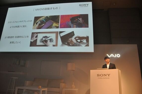 10月8日、ソニーは同社のPCシリーズ「VAIO」の秋冬モデル、4シリーズ17機種を発表した。今回の新モデル最大の特徴は、沸騰する「タブレット需要」の取り込みだ。13機種をそろえたノートPCの中核となる「VAIO Fit」は、背面ラインを軸に画面が回転するマルチフリップヒンジの採用で、従来のノートPCの使い心地を維持したまま、タブレット用途としても使用できる。