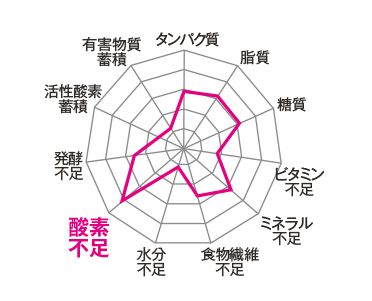 会員登録後、無料で食事習慣、生活習慣などからインナーケアのリスクを分析。かなりの酵素不足という結果に。