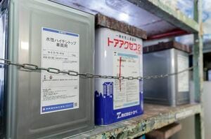 そして3つめの溶剤は、樹脂と顔料で構成される塗膜成分を溶解または分散させて流動化する液体で、油、アルコール、石油を蒸留抽出する炭化水素系などのほか、水も挙げられる。水で薄める塗料が水性塗料、シンナーとも呼ばれる有機溶剤で薄める塗料が溶剤塗料で、昔は植物油が主要成分である油性塗料が代表であった。塗った後は水は蒸発、有機溶剤は揮発して抜け、樹脂と顔料を成分とする堅い塗膜ができる。乾いてしまえば、水性塗料といえど、もはや水で融けることはない。