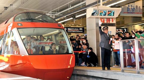 プラットホームからあふれんばかりの鉄道ファンに見送られて、真新しい赤い列車が新宿駅を出発した。3月17日午前9時、小田急電鉄の新型特急ロマンスカー「70000形」(愛称:GSE)がデビューを飾った。だが、この日は小田急にとってそれ以上に重い意味を持つ。1989年から続けてきた複々線化工事がようやく完了し、複々線化のメリットを存分に生かした新ダイヤがスタートした日でもあるからだ(「小田急vs京王『多摩の陣』で最後に笑うのは?」)。