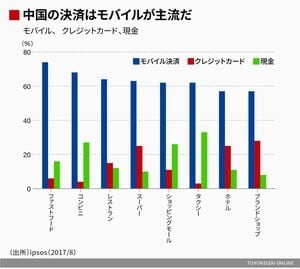 一方、クレジットカードは劣勢だ。2017年の決済利用額は、モバイル決済が前年比で28.8%伸びたのに対し、クレジットカードは2.7%の伸びにとどまった。中国では、日系のコンビニですら、国際ブランドのクレジットカードを受け付けない。