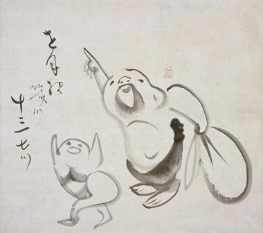 「悟りを開いたお坊さんの無垢の心を象徴するのが、円の絵です。心の中にわだかまりがなくなると、一番難しいと言われる円形がすんなり描ける。この世界に存在する最も美しい円形は満月です。ですから月は悟りの象徴と考えられる。布袋さんは、お坊さんが目指すのはこれなんだと、月を指差しているのです」