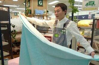 5階のインテリアフロアの一角には、睡眠にかかわるコーナーの店主・安土知宏さんが常駐する。複数のメーカーが販売するマットレスや布団、枕の中から客の要望に合った商品を探し出す。満足いく枕が見つからない場合、オーダーメード品の注文にも対応する。アロマなどの関連用品も提案し、さながら睡眠のコンシェルジュといった雰囲気だ。