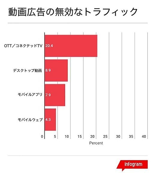 米DIGIDAYが報じたように、動画はお金が集まり、詐欺師にとって極めて魅力的になっている。これから5年間で動画広告支出が大きく増加する見込みのOTTだが、フラウド防止アドテク企業のピクサレートによると、人間でない無効なトラフィックの温床にもなっている。コネクテッドTVやOTTのブログラマティック販売された動画広告は2017年10月、5件に1件以上(20.4%)が無効だと測定された。