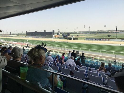 いよいよ当日。厳重な手荷物検査を潜り抜けて中に入ると、メイダン競馬場の「ギャラリーレベル1」はまことに贅沢な空間であった。