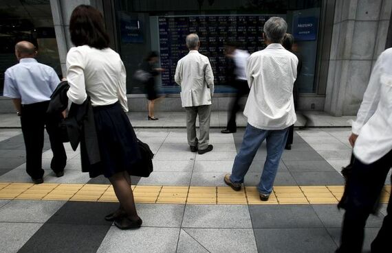 4月9日、東京株式市場で日経平均は反発した。前週末の米国市場でダウが大幅安だったことに加え、為替もやや円高方向に振れ、序盤の日本株は下落スタートとなったが、米株価指数先物やドル/円の底堅い動きが相場を支援し、プラス圏に切り返した。写真は都内で2015年5月撮影(2018年 ロイター/Yuya Shino)
