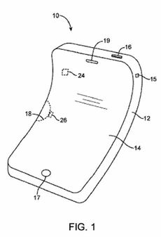 この特許は、「ディスプレイやハウジングおよび内部パーツが柔軟であり変形可能」とされており、画面がコンニャクのように曲がる、「折れ曲がるスマートフォン」が開示されている。