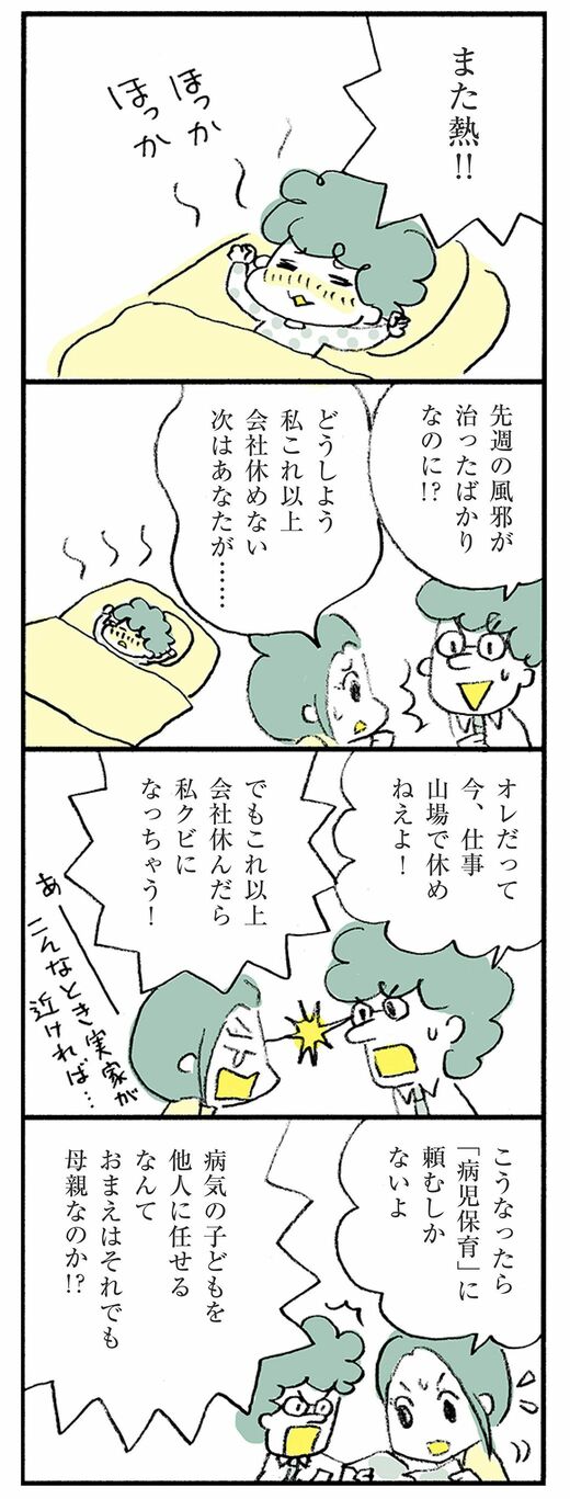そんなふうに「つかれる家族」と「つかれない家族」を考察するこの連載。今回から数回に分けて「家事育児の外部委託」をテーマにお届けします。家族や親族で分担しても、友人知人に頼っても、それでもどうしても手が足らない、時間が足らない。そのために家族がつかれてボロボロ、家族間もギスギスしてしまっている……。そんなときのひとつの解決手段が、プロにお任せするということです。今回はまず「病児保育」について紹介します。