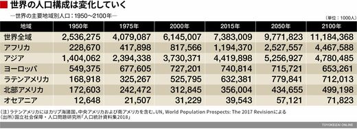 世界の人口上位10カ国に、1950年にはアフリカの国は一つも入っていなかった。2015年時点ではアジアの国は、中国、インドをはじめとして10位の日本まで6カ国が入っているが、アフリカの国は7位にナイジェリアが入っているだけだ。