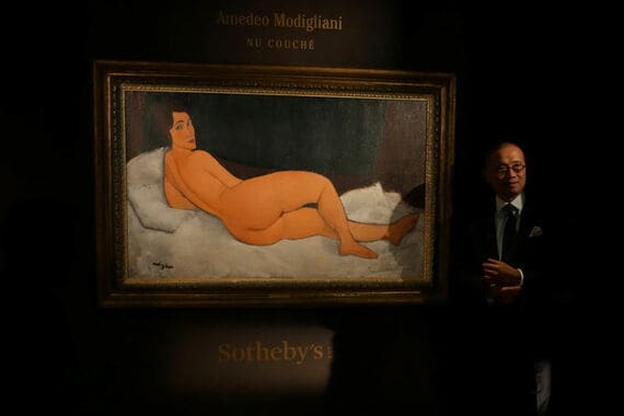 出品されるのは「(体の左側を下にして)横たわる裸婦」という作品で、モディリアーニが35歳で死去する少し前に書かれたもの。女性はプロのモデルとみられている。