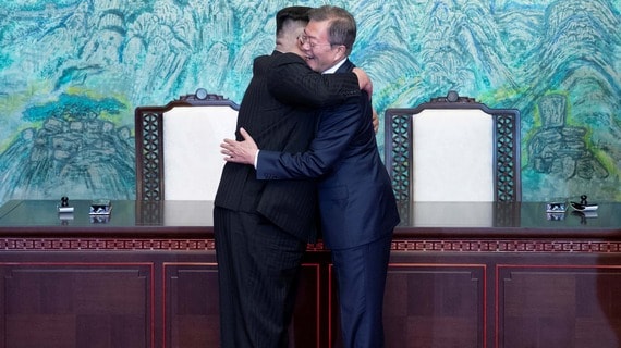 朝鮮半島の2人の指導者は4月27日の朝、板門店平和里の軍事境界線上 (北緯38度線) で握手を交わし、十数年ぶりに南北首脳会談を行った。