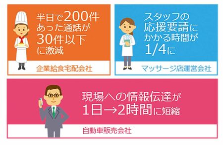 2社目は、兵庫県を中心に企業給食の製造と配達を行う浜の家のケース。配達員と本部スタッフとの連絡手段が以前は携帯電話しかなく、聞き間違いによる配送ミスがあった。「給食は昼までに届けなければならないので、早朝、その日の注文が入る前に、配達員は出発していたのです。確定注文数は、本部スタッフが配達員に電話で伝えていました」(長橋氏)。給食数が足りないときは、他の配達員に余剰分を届けてもらうという連絡調整が必要で、担当の本部スタッフは午前中電話連絡で忙殺されていた。LINE WORKS導入後は劇的に変わった。本部スタッフと配達員が、リアルタイムで配達状況を共有できるので、本部スタッフが受ける午前中の電話の数が、一人約200件から30件以下に激減。また、注文票をスマホで撮った画像で共有できるようになり、配送ミスが減少。配達員同士のチーム意識が向上し、自ら調整し、協力し合うようになったという成果も得られた。