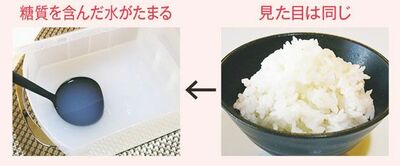 独自の機構で糖質成分を含んだ重湯を排出。食物繊維量はそのまま、糖質だけカット。小盛りでガマンしていたごはんも普通盛りでOK。