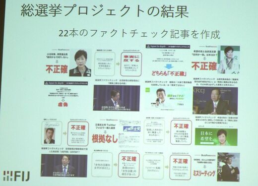 「GoHoo」代表でFIJ理事/事務局長を務める楊井(やない)人文さんはプロジェクトの成果について、「産経新聞の記事の中で誤報がありました。具体的には、当時立憲民主党は政党要件を満たさないのではないかという記事でした。これに対し、誤りだと指摘するTweet(ソーシャルメディア「Twitter」での投稿)が見つかりました。これをメディア側に提供して、事実に反するということが実際に取材・調査で明らかになりました。