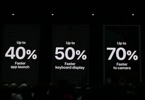 アプリの起動は40%、キーボードが表示される時間は50%、カメラ起動は70%も表示までの反応速度が改善され、内蔵プロセッサーの動作効率も最新プロセッサーだけでなく、2013年発売のiPhone 5sにまでさかのぼって最適化される。