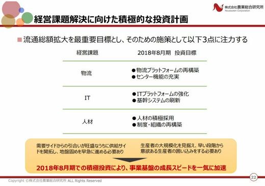 及川:そうですね。そこまでは今は考えていなくて、まずはどこよりも物流コストのかからない、青果の物流プラットフォームを作るということに注力しています。