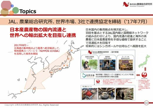 村上:さて、今回はまず海外展開について伺います。初めに、御社と、御社の子会社である株式会社世界市場と、日本航空が連携しているプロジェクトは「日本産農産物の世界への輸出拡大」を謳っていますが、これにはどういった狙いがあるのでしょうか?