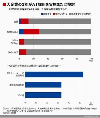 企業はまだ導入すべきかどうか迷っている状況だ。AI活用のメリットを享受するのは、企業規模が大きく、志望学生が多い企業に限られる。機械学習させるべき学生データが多く、また導入した際の効率性も高いからだ。