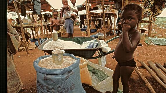 ナイジェリア人はなにかを警戒し、食べずに離れて見ている。横ではやっと祖国に帰れたリベリア人たちが、一気にポテトリーフを平らげていた。