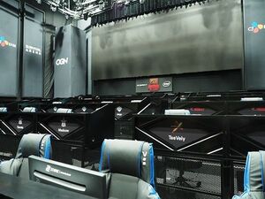eスポーツ用の会場は、見た目にはコンサートホールのような場所もあれば、50人の選手が一堂に会し試合ができるよう50台のPCがステージ上に並べられている会場もあり、その様相は圧巻です。タイトルによって使い分けられており、『PUBG』や『クラッシュ・ロワイヤル』『ブレイドアンドソウル』『リーグ・オブ・レジェンド(LoL)』などのタイトルが扱われています。