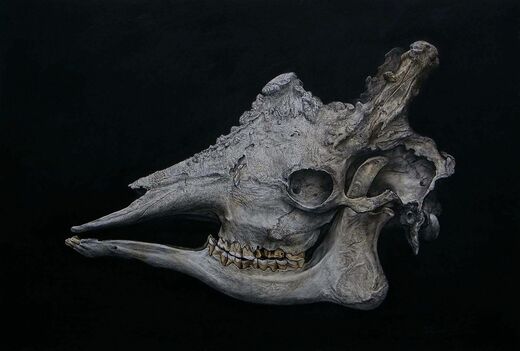 小田さんは古生物復元画、大学での講義、動物や骨などをテーマにした作品制作と忙しい日々を送っている。