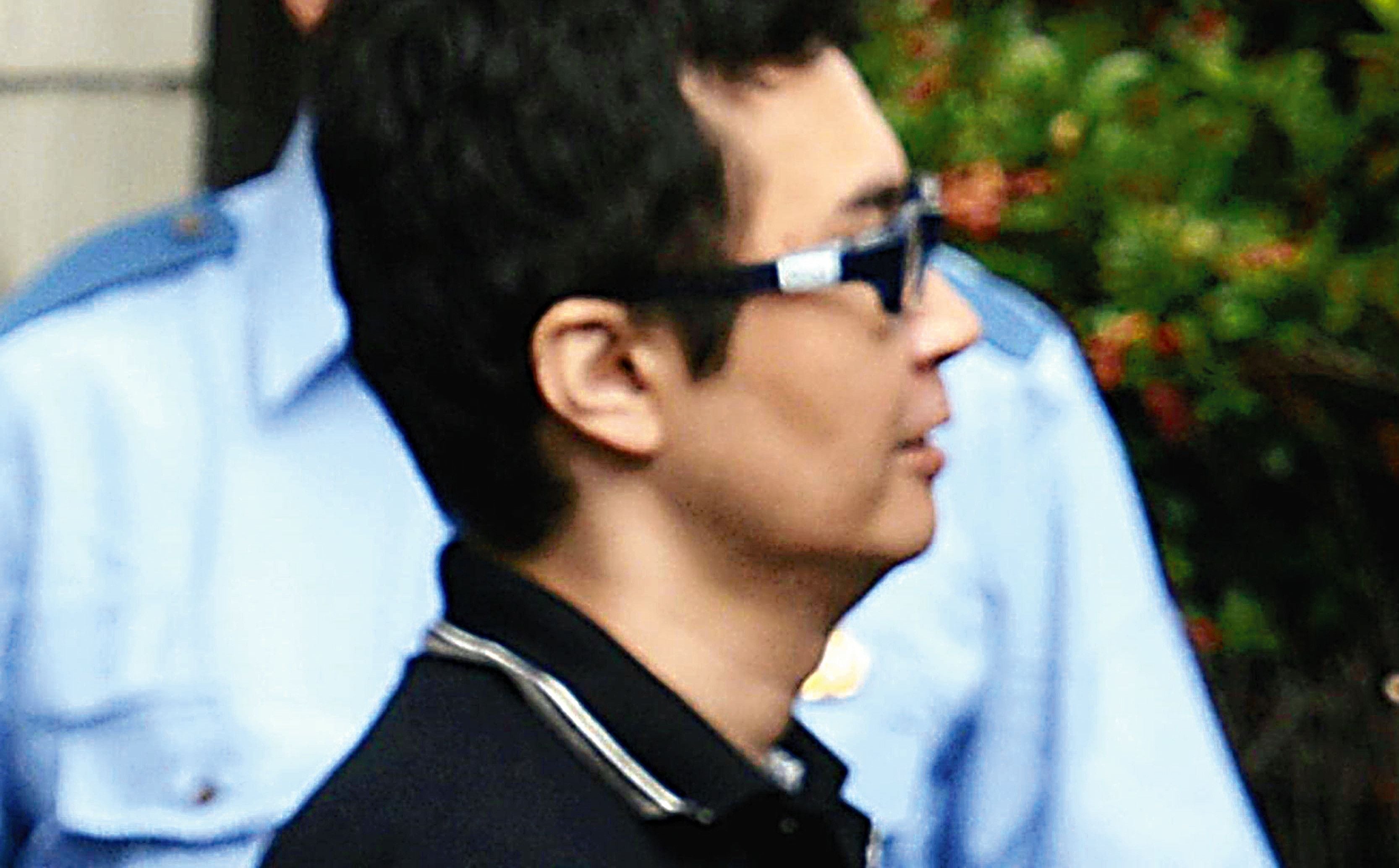 送検される松本英光容疑者(26日午後、福岡県警中央署で)=久保敏郎撮影