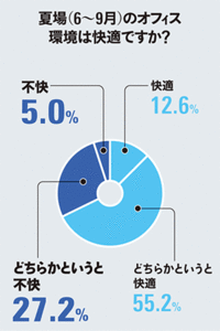 さらに、エアコンが効いているはずのオフィスの快適度についても聞いたところ、「不快」または「どちらかというと不快」と答えた人が3割を超え、3人に1人が何かしらの我慢をして仕事をしていることが明らかとなった。