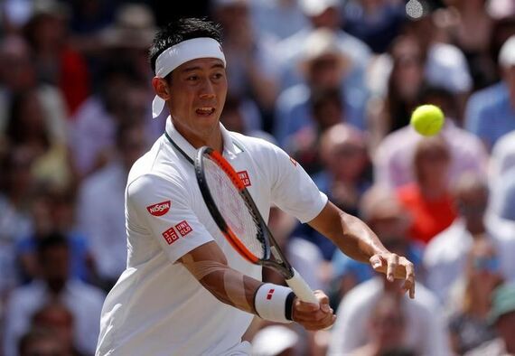 7月11日、テニスのウィンブルドン選手権、男子シングルス準々決勝で錦織圭(写真)はノバク・ジョコビッチに3─6、6─3、2─6、2─6で敗れた(2018年 ロイター/Andrew Couldridge)